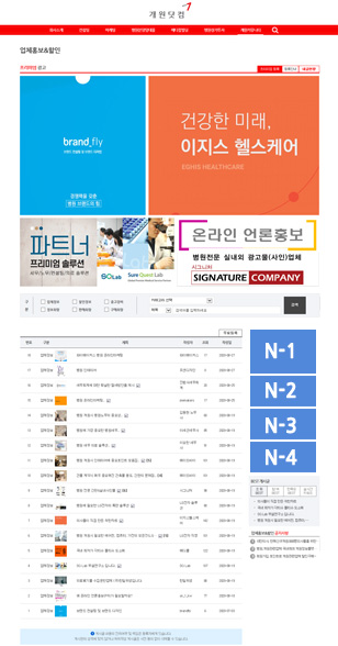 L-1~4 | 우측 및 상단 영역으로 노출 4개구좌 고정형 광고 노출 |